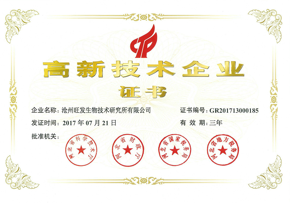 滄州旺發(fā)生物技術研究所有限公司創立于1993年,是集研發(fā)、生產、銷售于一體的微生態(tài)制劑生產“高新技術企業”、“國家知識產權優(yōu)勢企業”、“河北省農業產業化重點龍頭企業”、“河北省創新型中小企業”、“河北省專精特新中小企業”,目前,公司注冊資金1360萬元,生產占地80畝,擁有液、固態(tài)結合全自動發(fā)酵生產線及標準化全自動液態(tài)發(fā)酵、噴霧干燥生產線。